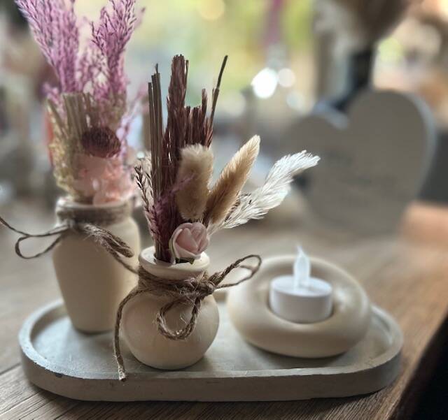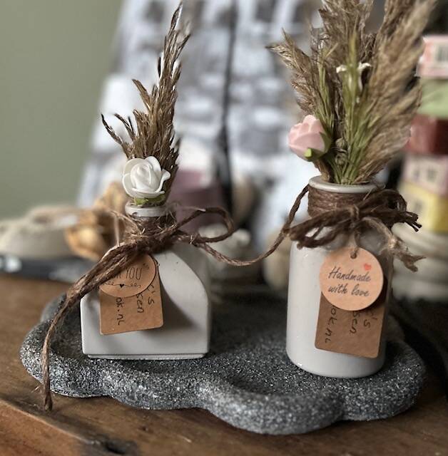 Schalen met vaasjes